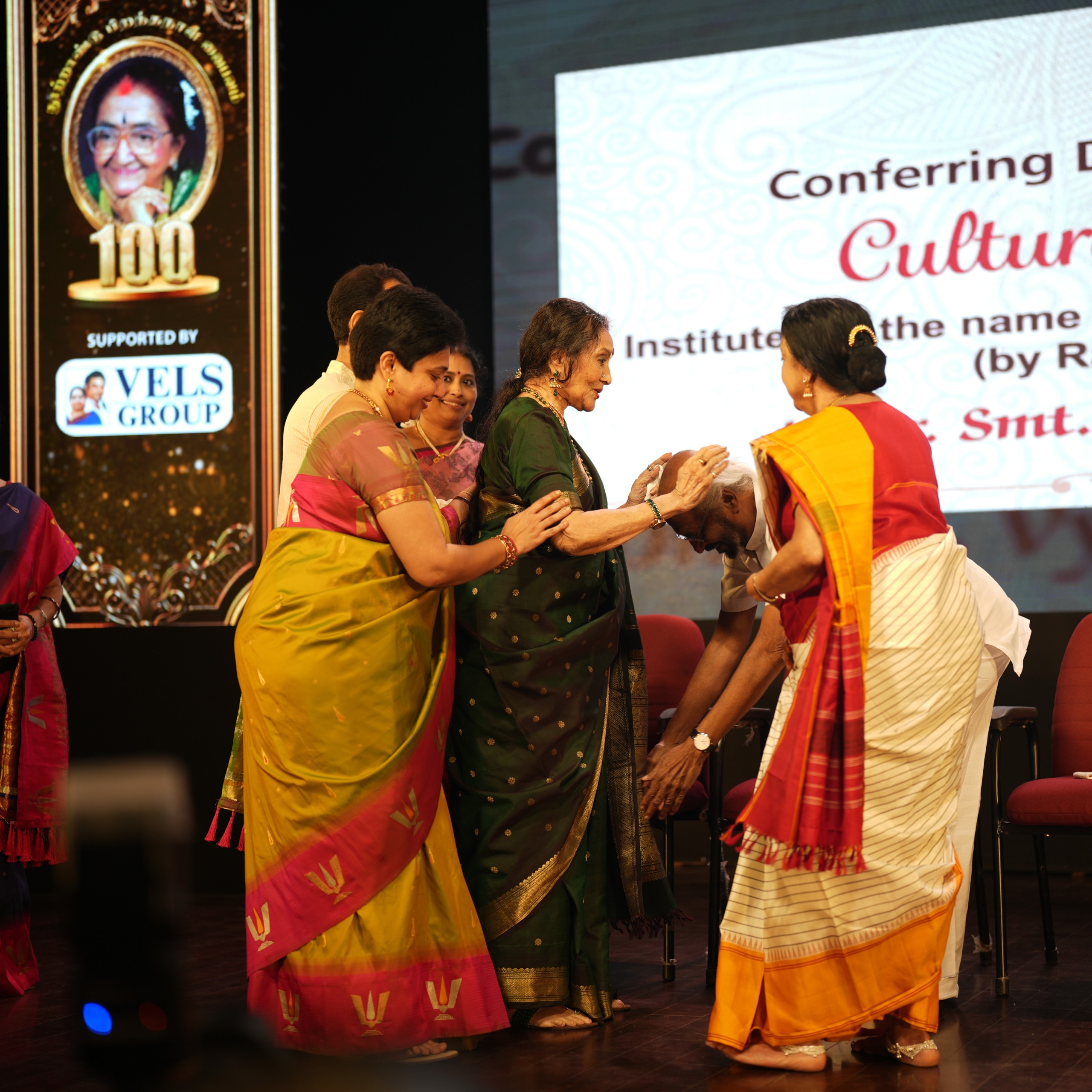 டாக்டர் திருமதி ஒய் ஜி பி அவர்களுடன் நீண்டகாலம் பணியாற்றிய திருமதி சுந்தரி சங்கரன், திருமதி சந்திரா ரமணி மற்றும் திருமதி விஜி கண்ணன் ஆகியோர் விழாவில் கௌரவிக்கப்பட்டனர்.