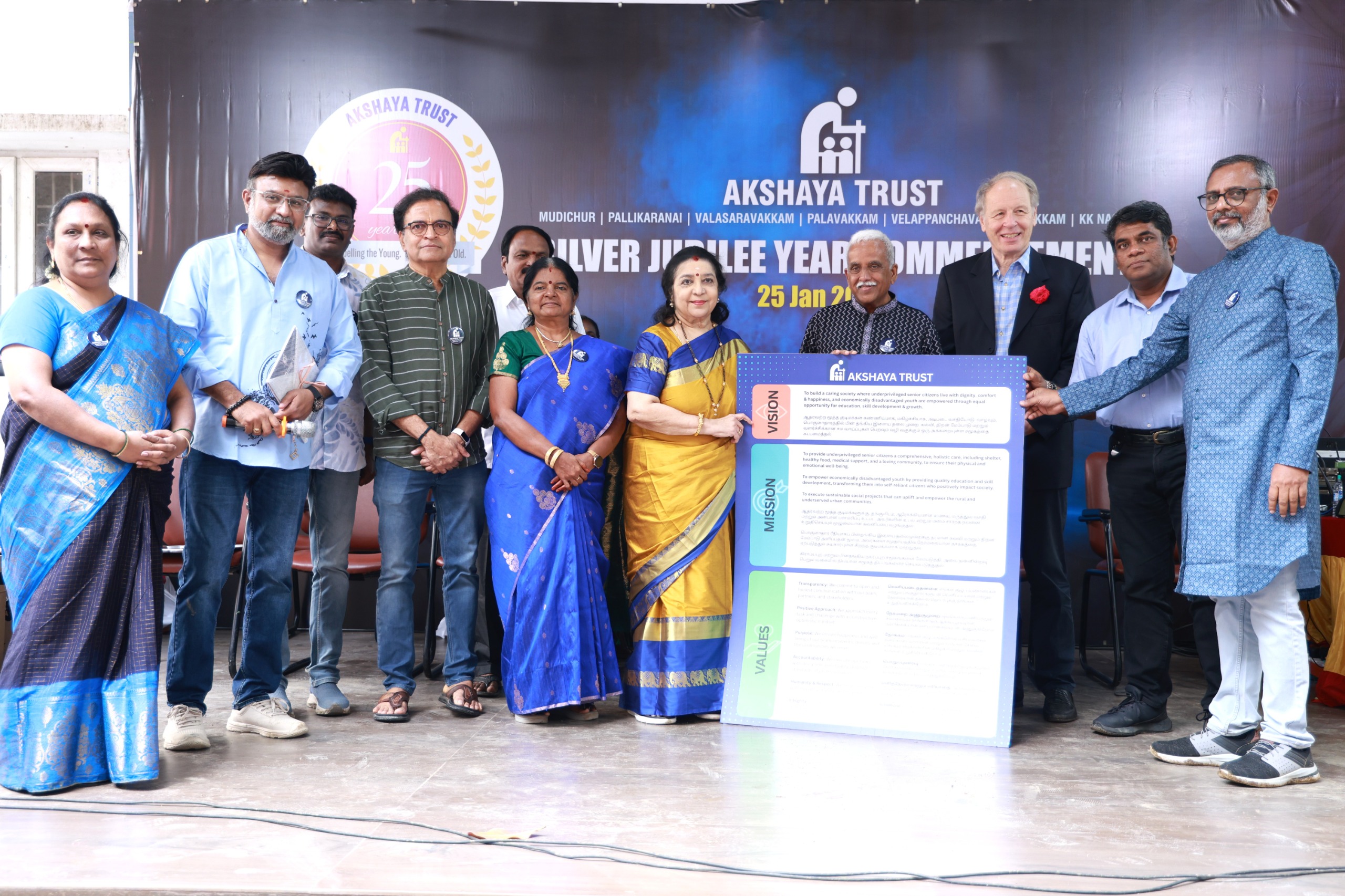 அக்ஷயா டிரஸ்ட் அறக்கட்டளையின் 25வது ஆண்டு தொடக்க விழா, சென்னை தாம்பரம் அருகே உள்ள முடிச்சூரில், மூத்த நடிகை திருமதி லதா சேதுபதி அவர்கள் தலைமையில், வெகு சிறப்பாக நடைபெற்றது.