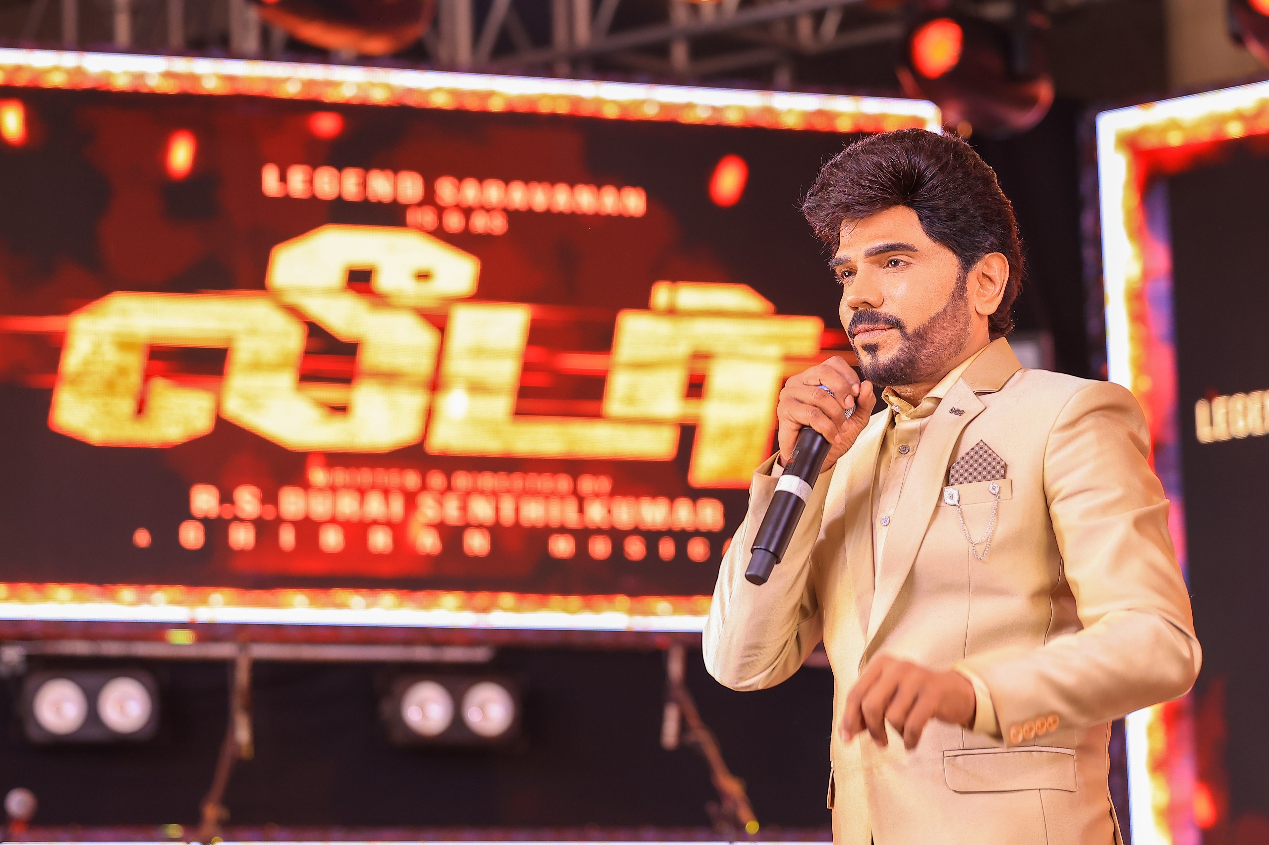 லெஜெண்ட் சரவணன் பேசுகையில், “இந்த விழாவில் சிறப்பு விருந்தினர்களாக கலந்து கொண்ட தயாரிப்பாளர்கள், இயக்குநர்கள் ஆகியோருக்கு நன்றி. இன்றைய சூழலில் போர் மேகங்கள் சூழ்ந்து மக்களுக்கு ஒரு பாதுகாப்பாற்ற தன்மை நிலவிக் கொண்டிருக்கிறது இந்தப் போர் விரைவில் நிறுத்தப்பட்டு மக்கள் அனைவரும் மீண்டும் மகிழ்ச்சியாக சந்தோஷமான, பாதுகாப்பான, ஒரு அன்பான வாழ்க்கையை வாழ உங்களுடன் சேர்ந்து இறைவனிடம் நானும் பிரார்த்தனை செய்து கொள்கிறேன்.