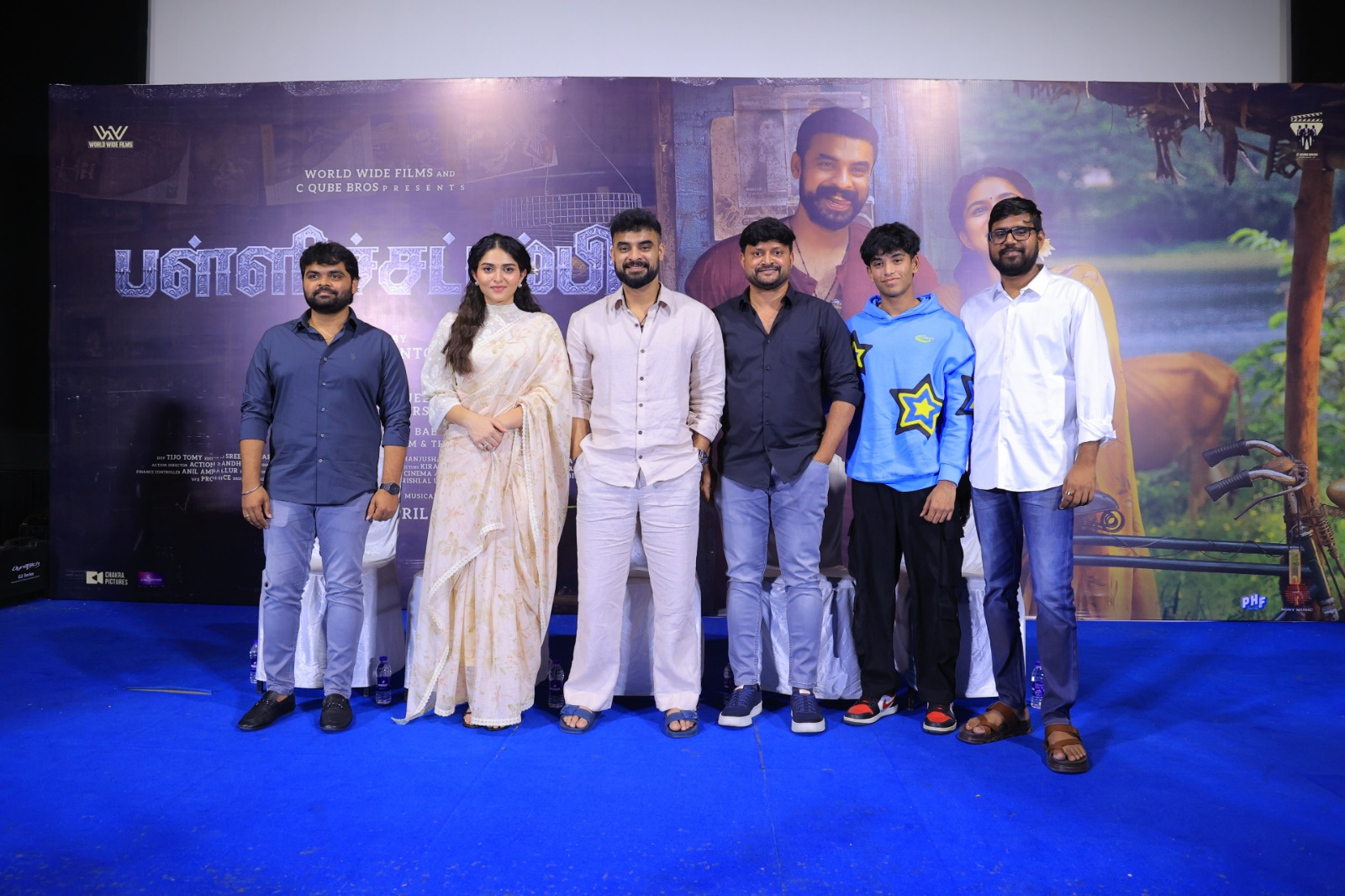 தமிழ்ப் பதிப்பிற்காக சென்னையில் இன்று நடைபெற்ற பத்திரிகையாளர் சந்திப்பில், நடிகர் டொவினோ தாமஸ், நடிகை கயாடு லோஹர், இணை தயாரிப்பாளர் மேகா ஷ்யாம், சக்ரா பிக்சர்ஸ் வெற்றி, தயாரிப்பாளர் சைதன்யா, சரண் ஆகியோர் கலந்து கொண்டனர்.