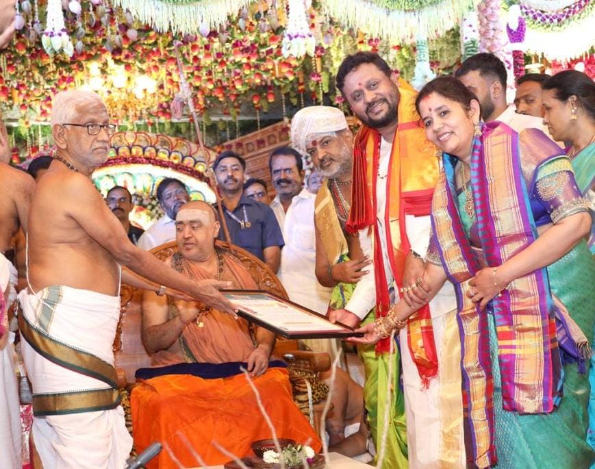 • The Kanchi Kamakoti felicitates Sri Jagadish Kadavul as “Bharatiya Kalachara Seva Mani” in honor of his religious and social activities